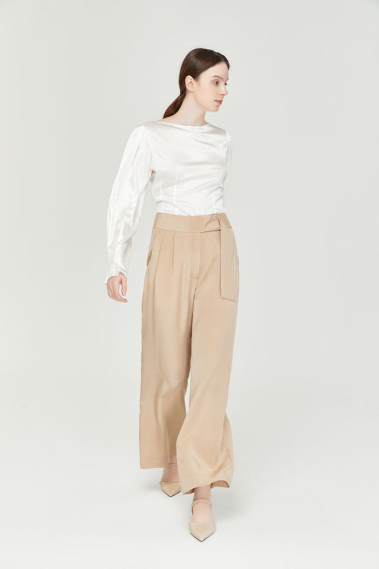 Wide-Leg Tea Silk Trousers