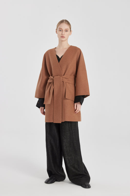 VARA TEA SILK COAT-BROWN