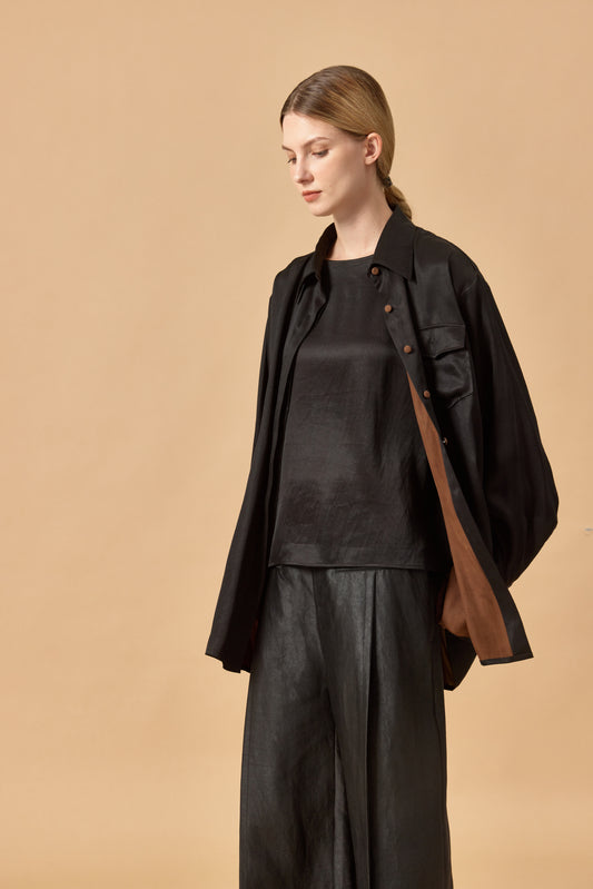 Pleated Tea Silk Shirt